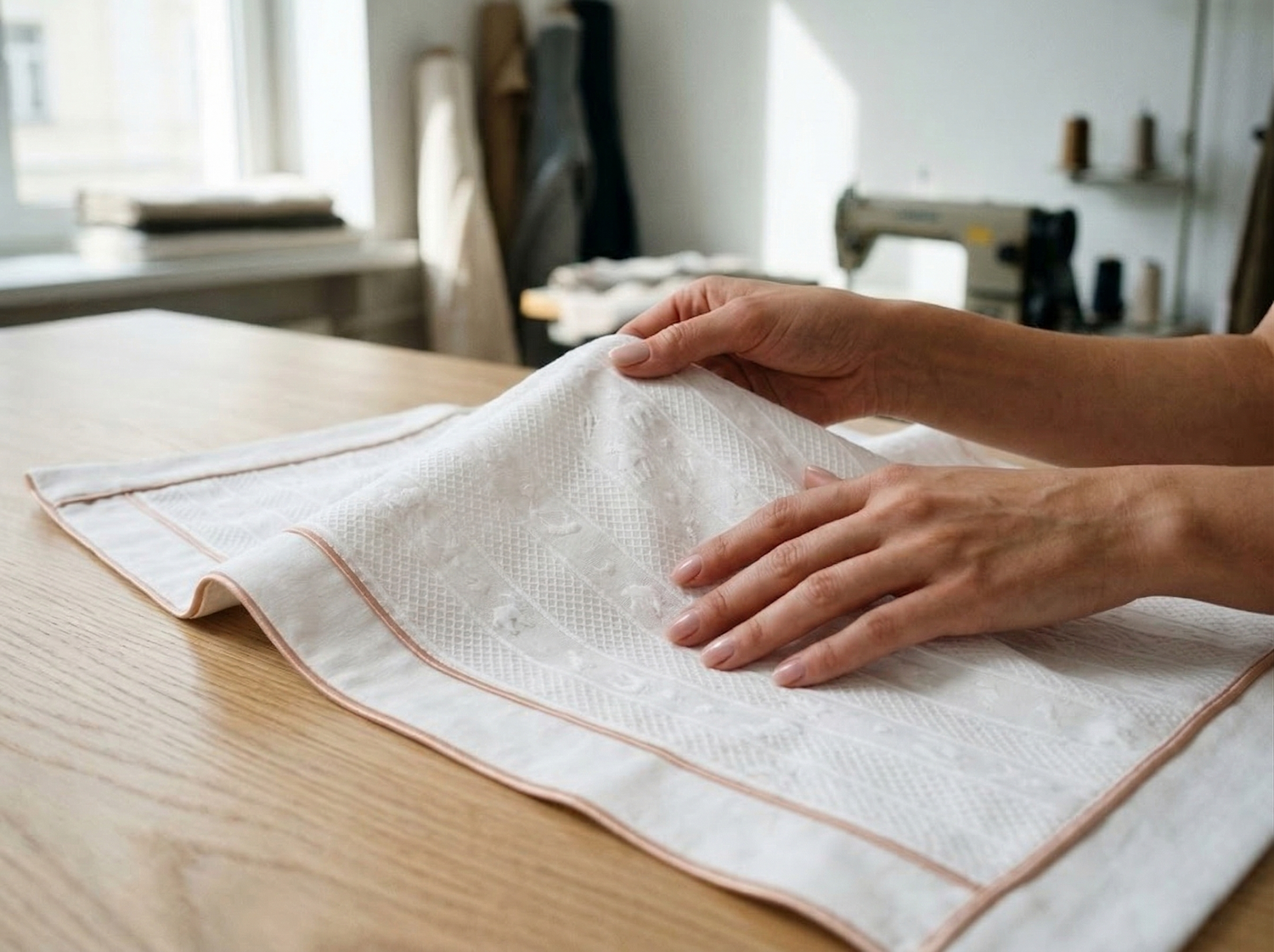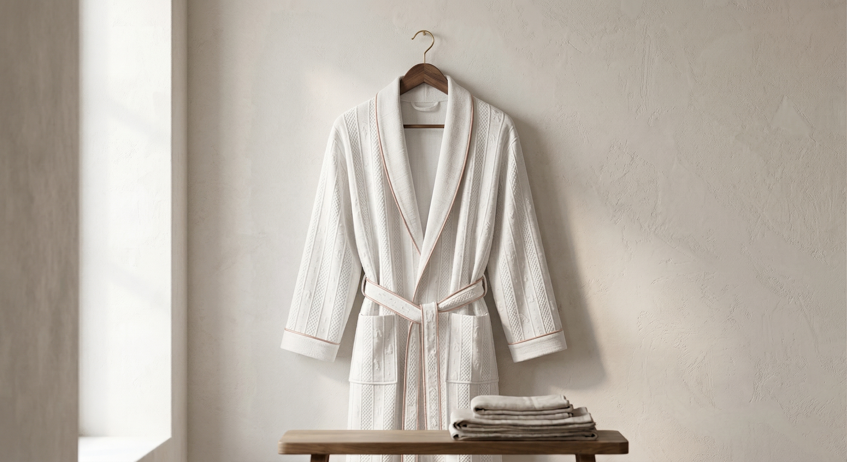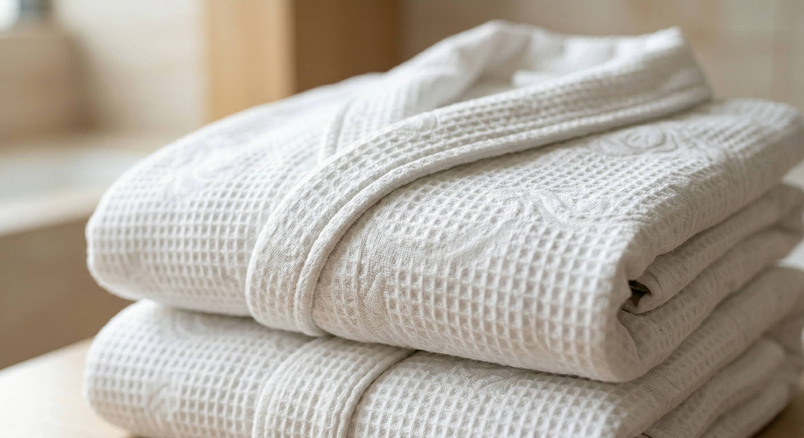 "We source only the finest 100% Cotton Jacquard and premium waffle-weave fabrics. ensuring they are free from harmful substances and safe for even the most sensitive skin. Experience the signature breathability and plush tactility found in the world’s leading luxury hotels."