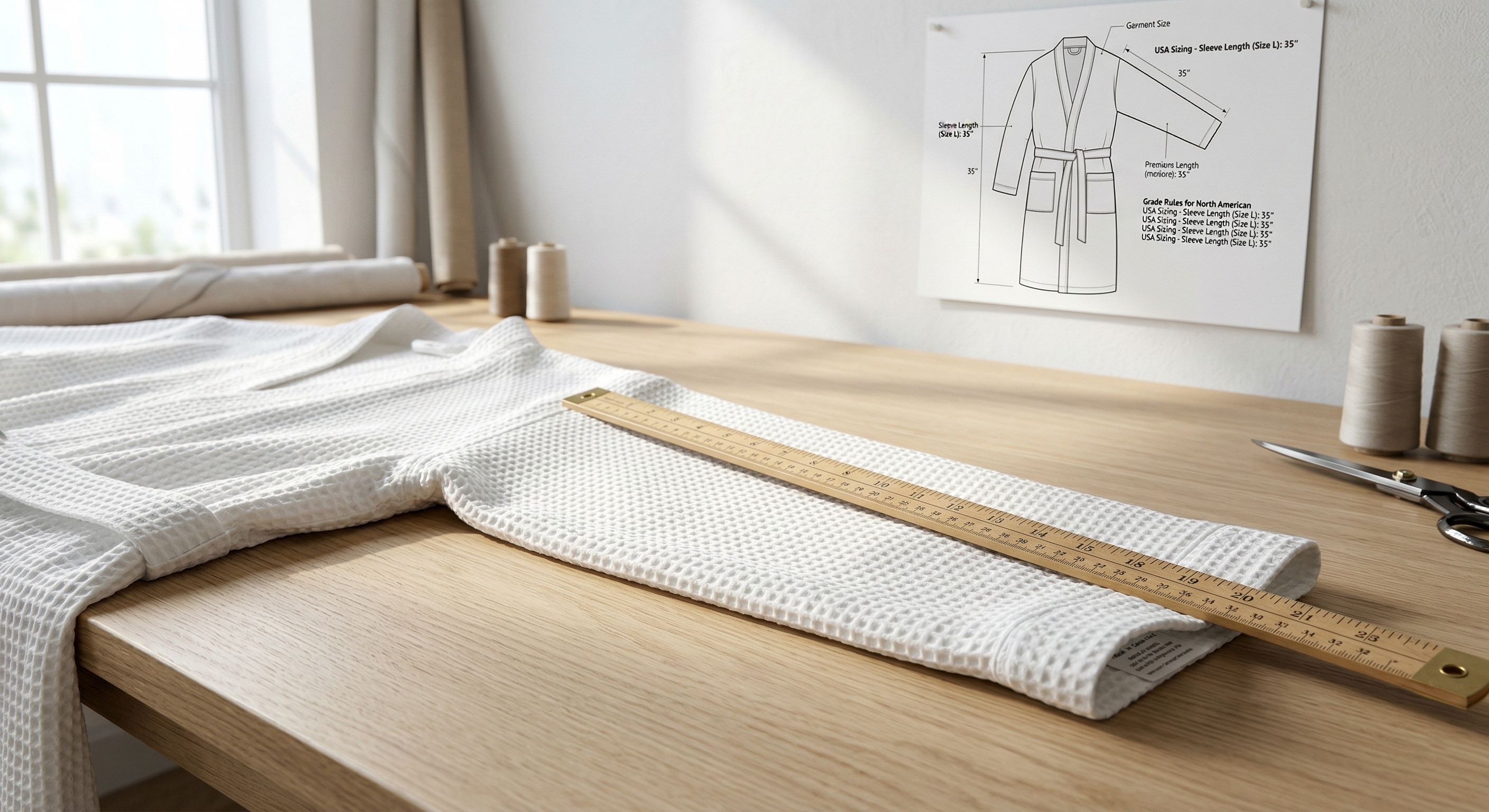 "Say goodbye to 'Asian Sizing' confusion. Our garments are engineered using dedicated North American tech packs, ensuring a perfect, inclusive fit for the US and Canadian markets. From generous shawl collars to calibrated sleeve lengths, our robes offer the 'True-to-Size' reliability your customers expect."